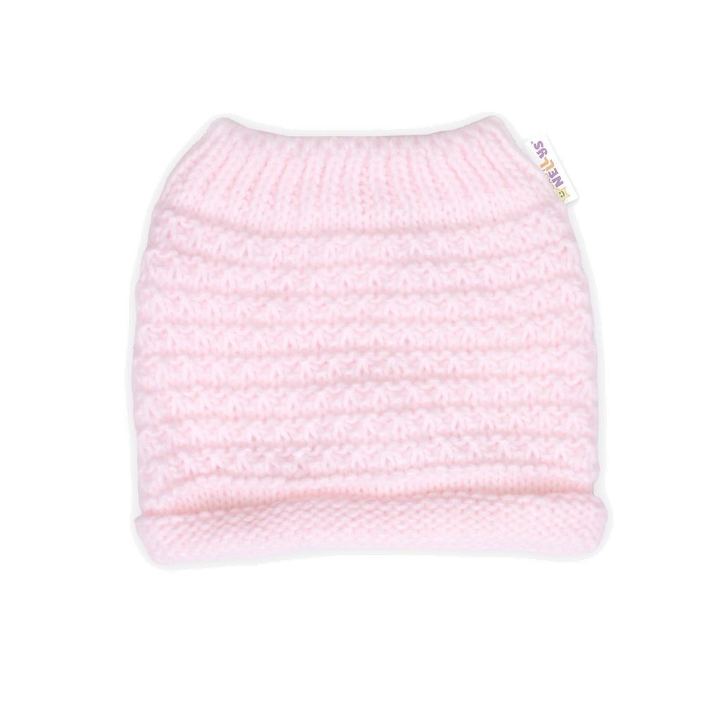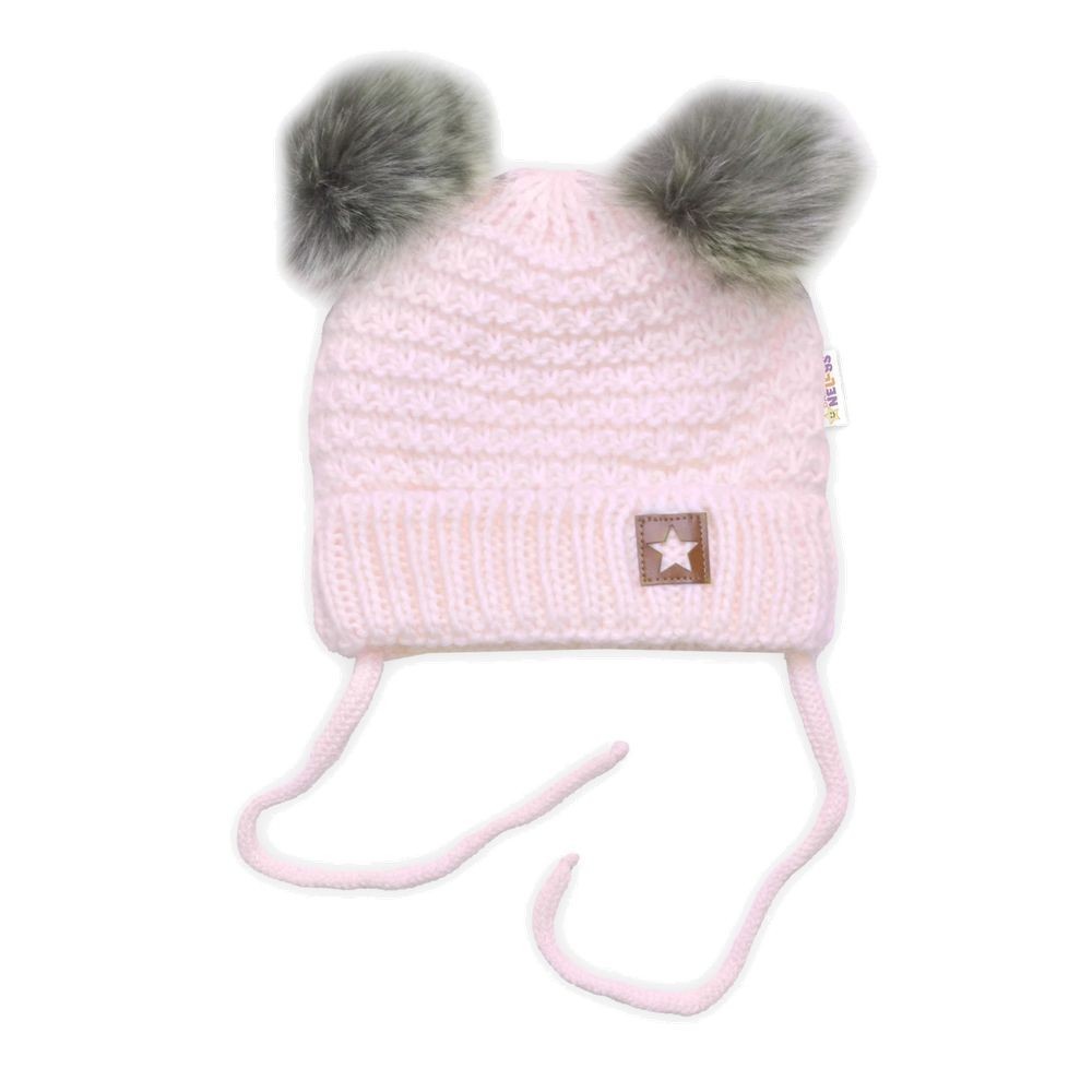 BABY NELLYS Zimní čepička/kukla s bambuli - sv. růžová s...