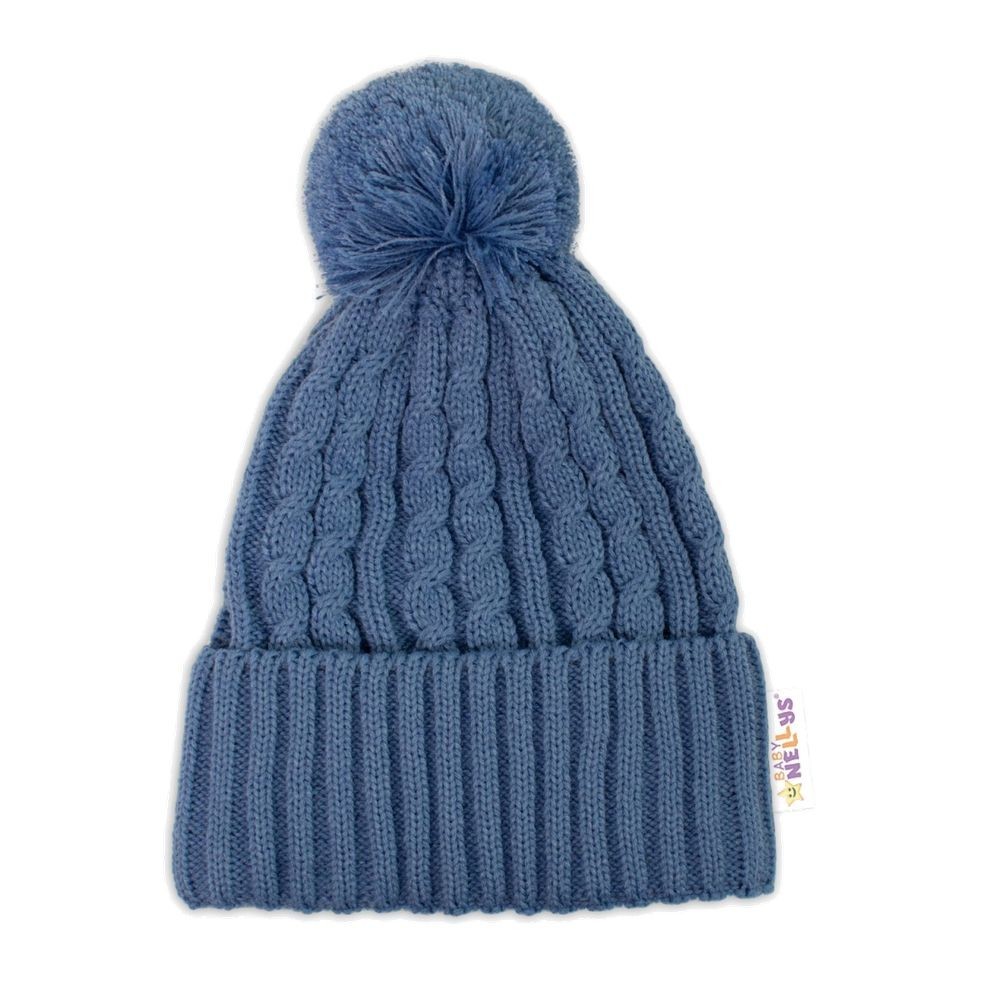 Zimní čepice s bambulí + komínek Baby Nellys - modrá, jeans,-52cm