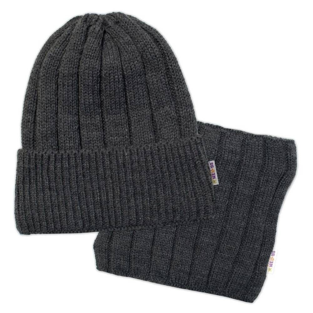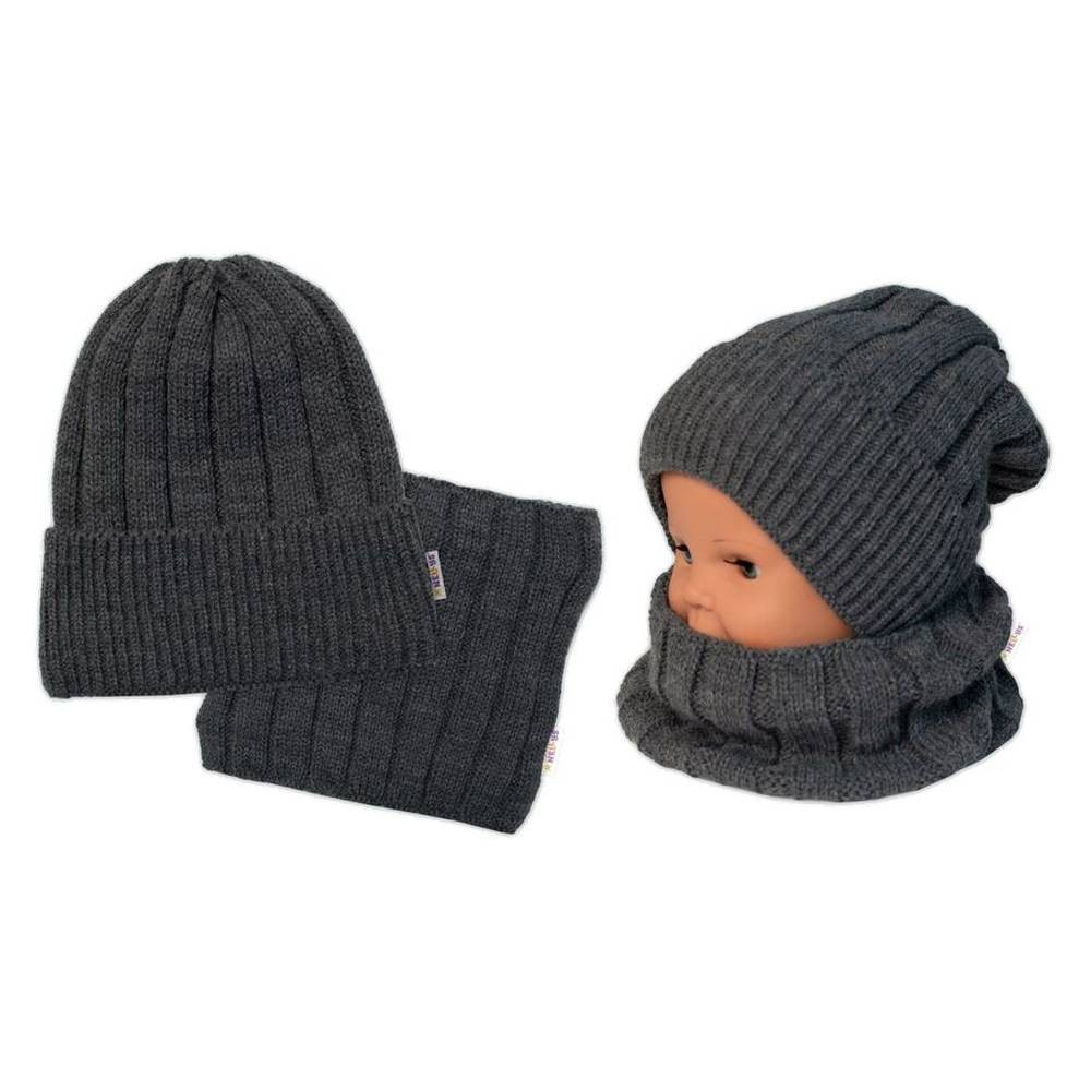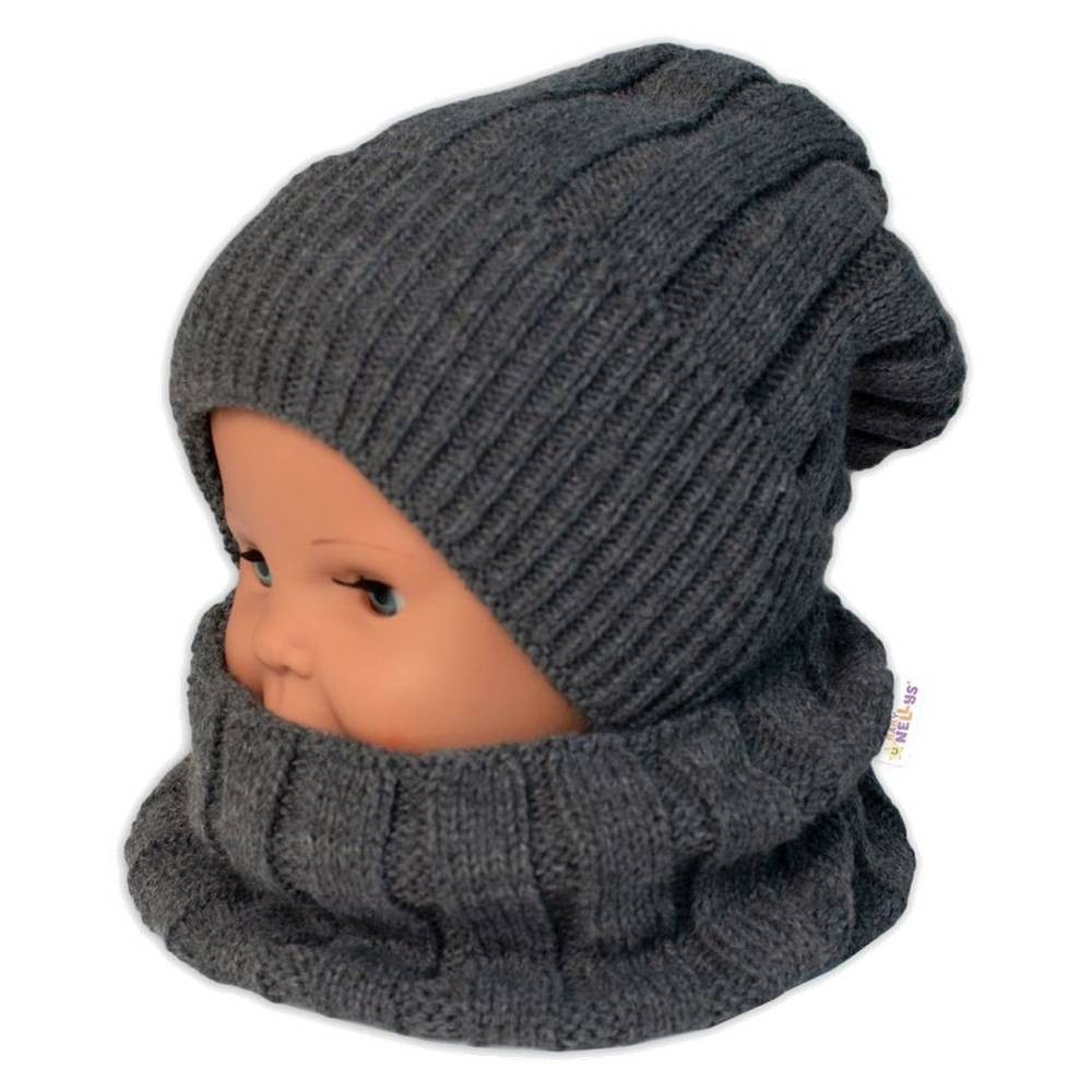 Dětská zimní nadčasová čepice + komínek , tm. šedá, BABY NELLYS