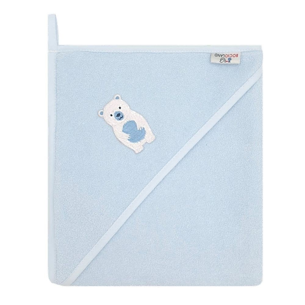 Osuška s kapucí a oušky Medvídek, 100x100 cm - modrý